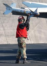 | Keywords: US Navy 030320-N-3235P-523 Aviation Ordnanceman 2nd Class Iantha P. Dube arms an AIM-9 Sidewinder air-to-air missile attached to the wing of an F-A-18 Hornet before it launches from one of four steam powered catapults from the.jpg This picture is of someone else This is not the Sailor that goes with that name Look her up on Facebook and you will find the right Iantha Dube G Westfield en The Mediterranean Sea Mar 20 2003 -- Aviation Ordnanceman 3rd Class Yara M Quintana arms an AIM-9 Sidewinder air-to-air missile attached to the wing of an F/A-18 Hornet before it launches from one of four steam powered catapults from the flight deck of USS Harry S Truman CVN 75 Truman is currently deployed and is conducting missions in support of Operation Iraqi Freedom U S Navy photo by Photographer's Mate 1st Class Michael W Pendergrass RELEASED 2003-03-20 030320-N-3235P-523 Navy http //www navy mil/view_image asp id 5428 U S Navy photo by Photographer's Mate 1st Class Michael W Pendergrass PD-USGov-Military-Navy AIM-9 Sidewinder Aviation Ordnanceman Aboard USS Harry S Truman CVN-75 Photographs by Michael W Pendergrass |