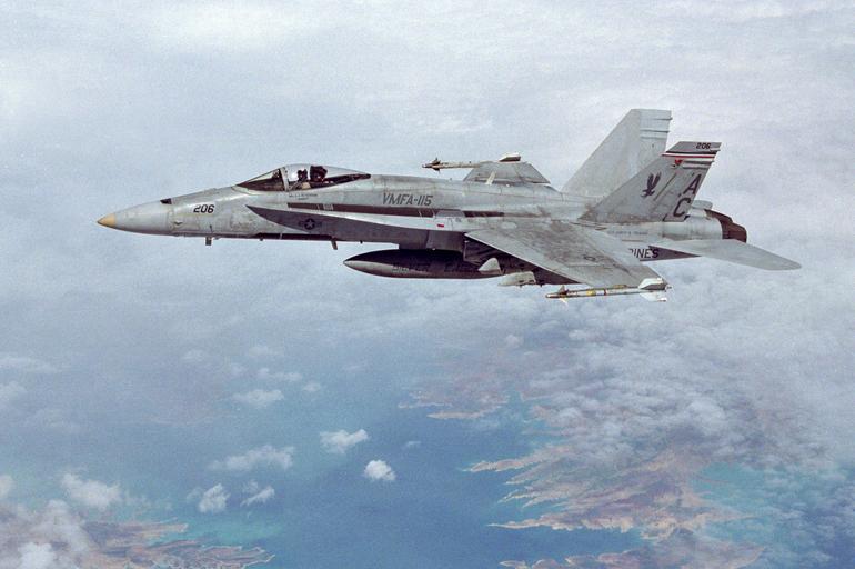 | Keywords: US Navy 030327-N-0000X-001 An F-A-18 Hornet assigned to the ^ldquo,Silver Eagles^rdquo, of Marine Fighter Attack Squadron One One Five (VMFA-115).jpg en Mediterranean Sea Mar 27 2003 -- An F/A-18 Hornet assigned to the Silver Eagles of Marine Fighter Attack Squadron One One Five VMFA-115 flies a combat mission over Iraq Truman and her embarked Carrier Air Wing Three CVW-3 are operating in support of Operation Iraqi Freedom Operation Iraqi Freedom is the multi-national coalition effort to liberate the Iraqi people eliminate Iraq s weapons of mass destruction and end the regime of Saddam Hussein U S Navy photo RELEASED 2003-03-27 030327-N-0000X-001 Navy http //www navy mil/view_image asp id 5887 U S Navy photo PD-USGov-Military-Navy F/A-18 Hornet in flight |
