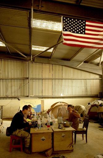 | Keywords: US Navy 030328-N-3783H-345 Members of Commander Task Unit (CTU-55.4.3) eat breakfast in the warehouse they've occupied at the port of Umm Qasr, Iraq.jpg  en Umm Qasr Iraq Mar 28 2003 -- Members of Commander Task Unit CTU-55 4 3 eat breakfast in the warehouse they've occupied at the port of Umm Qasr Iraq CTU-55 4 3 consists of U S Naval Special Clearance Team-1 Explosive Ordnance Disposal Mobile Units 6 and 8 Fleet Diving Unit 3 from the United Kingdom and a Clearance Dive Team from Australia all are conducting deep/shallow water mine counter measure operations to clear shipping lanes The unit was instrumental in clearing the way for the British Royal Fleet Auxiliary Landing Ship Logistic RFA Sir Galahad L 3005 which delivered the first wave of humanitarian aid in support of Operation Iraqi Freedom Operation Iraqi Freedom is the multi-national coalition effort to liberate the Iraqi people eliminate Iraq s weapons of mass destruction and end the regime of Saddam Hussein U S Navy photo Photographer s Mate 2nd Class Bob Houlihan RELEASED 2003-03-28 030328-N-3783H-345 Navy http //www navy mil/view_image asp id 5955 U S Navy photo PD-USGov-Military-Navy Umm Qasr in the Iraq War United States Navy Explosive Ordnance Disposal |