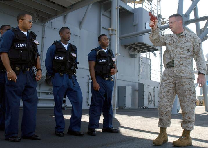| Keywords: US Navy 030403-N-0466M-001 U.S. Marine SSgt Gregory Hoover from Waverly, N.Y., instructs members of the security force aboard USS Mount Whitney (LCC-JCC 20).jpg en The Gulf of Aden Apr 3 2003 -- U S Marine SSgt Gregory Hoover from Waverly N Y instructs members of the security force aboard USS Mount Whitney LCC/JCC 20 on proper gun-handling procedures Mount Whitney is deployed to the Horn of Africa region participating in Operation Enduring Freedom and the global war on terrorism U S Navy photo by Photographer s Mate 3rd Class Aida E Miranda RELEASED 2003-04-03 030403-N-0466M-001 Navy http //www navy mil/view_image asp id 6333 U S Navy photo by Photographer s Mate 3rd Class Aida E Miranda PD-USGov-Military-Navy Aboard USS Mount Whitney LCC-20 |