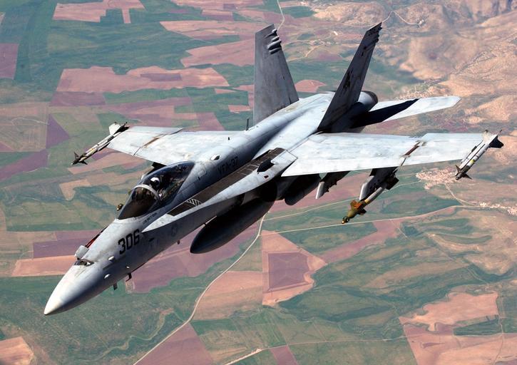 | Keywords: US Navy 030411-N-0780F-271 An F-A-18 Hornet strike fighter assigned to the ^ldquo,Bulls^rdquo, of Strike Fighter Squadron Three Seven (VFA-37) embarked aboard USS Harry S. Truman (CVN 75).jpg en Northern Iraq Apr 11 2003 An F/A-18 Hornet strike fighter assigned to the Bulls of Strike Fighter Squadron Three Seven VFA-37 embarked aboard USS Harry S Truman CVN 75 resumes a combat mission in direct support of Operation Iraqi Freedom following in-flight refueling with a KC-135 Stratotanker The F/A-18 Hornet is an all-weather aircraft used as an attack aircraft as well as a fighter Truman and her embarked Carrier Air Wing Three CVW-3 are conducting combat missions in support of Operation Iraqi Freedom Operation Iraqi Freedom is the multi-national coalition effort to liberate the Iraqi people eliminate Iraq's weapons of mass destruction and end the regime of Saddam Hussein U S Navy photo by Paul Farley RELEASED 2003-04-11 030411-N-0780F-271 Navy http //www navy mil/view_image asp id 6722 U S Navy photo by Paul Farley PD-USGov-Military-Navy F/A-18C Hornet in flight Strike Fighter Squadron 37 United States Navy |