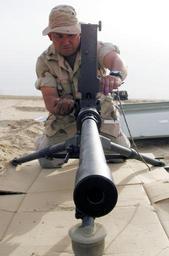 | Keywords: US Navy 030412-N-1050K-005 Gunner's Mate 2nd Class Miguel Martinez, 34, from Dallas, Texas, tests the barrel alignment of the M2 .50 caliber machine gun.jpg en Camp Patriot Kuwait Apr 12 2003 -- Gunner's Mate 2nd Class Miguel Martinez 34 from Dallas Texas tests the barrel alignment of the M2 50 caliber machine gun with the 'go-no go' key during a recent joint live fire exercise Martinez and others attached to Mobile Inshore Undersea Warfare Unit One Zero Nine MIUW-109 homeported in Fort Worth Texas described and showed the specifics of the M2 to 20 Kuwaiti security force personnel during a joint nation crew serve weapons familiarization training fire MIUWU-109 is one of the key all-reserve units attached to Naval Coastal Warfare Group One NCWG-1 forward deployed to handle force protection responsibilities at Camp Patriot Camp Patriot is home to nearly 3 000 active duty and reserve Sailors Soldiers Marines Airmen and Coast Guardsmen forward deployed in support of Operation Iraqi Freedom Operation Iraqi Freedom is the multi-national coalition effort to liberate the Iraqi people eliminate Iraq s weapons of mass destruction and end the regime of Saddam Hussein U S Navy photo by Journalist 1st Class Joseph Krypel RELEASED 2003-04-12 030412-N-1050K-005 Navy http //www navy mil/view_image asp id 6630 U S Navy photo by Journalist 1st Class Joseph Krypel PD-USGov-Military-Navy Camp Patriot Browning M2 of the US Navy Gunner's Mate Mobile Inshore Undersea Warfare Unit 109 |