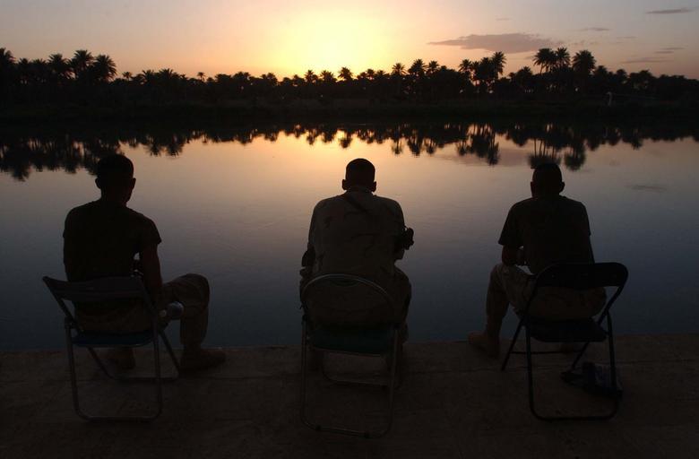 Keywords: US Navy 030528-N-5362A-009 U.S. Marines spend some quiet time at the end of the day to enjoy a sunset on the banks of the Euphrates river at a camp near Al Hillah.jpg en Al Hillah Iraq May 28 2003 -- U S Marines spend some quiet time at the end of the day to enjoy a sunset on the banks of the Euphrates river at a camp near Al Hillah Marines and Navy Seabees are restoring a local jail in the area The jail is being restored with the help of Seabees assigned to Naval Mobile Construction Battalion Fifteen NMCB-15 who are forward deployed to Iraq and working on various construction projects aimed at helping Iraqi citizens in the effort to rebuild municipal facilities in support of Operation Iraqi Freedom Operation Iraqi Freedom is the multi-national coalition effort to liberate the Iraqi people eliminate Iraq's weapons of mass destruction and end the regime of Saddam Hussein U S Navy photo by Photographer s Mate 1st Class Arlo K Abrahamson RELEASED 2003-05-28 030528-N-5362A-009 Navy http //www navy mil/view_image asp id 7907 U S Navy photo by Photographer s Mate 1st Class Arlo K Abrahamson PD-USGov-Military-Navy Euphrates Images from US Navy location Al Hillah Iraq Contre-jour photography Babylon Governorate |