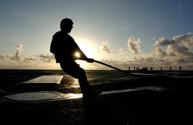 Keywords: US Navy 030604-N-0696M-002 An Aviation Boatswain's Mate prepares to rig an arresting gear wire in preparation for early morning flight quarters.jpg en South Atlantic Ocean June 4 2004 - An Aviation Boatswain's Mate prepares to rig an arresting gear wire in preparation for early morning flight quarters aboard USS Ronald Reagan CVN 76 The aircraft carrier with embarked Carrier Air Wing One One CVW-11 is underway in the South Atlantic Ocean circumnavigating South America on her way to her new homeport of San Diego Calif U S Navy photo by Photographer's Mate 2nd Class Chad J McNeeley RELEASED 2004-06-04 030604-N-0696M-002 Navy http //www navy mil/view_image asp id 14775 U S Navy photo by Photographer's Mate 2nd Class Chad J McNeeley PD-USGov-Military-Navy Aviation Boatswain's Mates Aboard USS Ronald Reagan CVN-76 Arrestor cables |