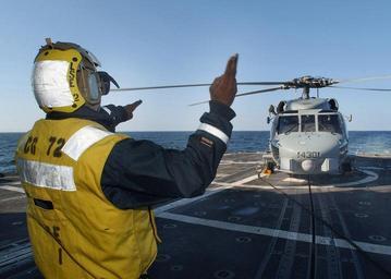 Keywords: US Navy 030609-N-4374S-002 The start-up signal is given to an MH-60B Seahawk helicopter assigned to the ^ldquo,Proud Warriors^rdquo, of Light Helicopter Antisubmarine Squadron Forty Two (HSL-42).jpg en Baltic Sea Jun 9 2003 -- The start-up signal is given to an SH-60B Seahawk helicopter assigned to the Proud Warriors of Light Helicopter Antisubmarine Squadron Forty Two HSL-42 The helicopters are aboard the Aegis cruiser USS Vella Gulf CG 72 during the annual maritime exercise Baltic Operations BALTOPS 2003 The United States and 12 other nations are participating in this year's exercise which is intended to improve interoperability between allies and Partnership for Peace countries by conducting a peace support operation at sea including exercises in gunnery replenishment-at-sea undersea warfare radar tracking mine countermeasures seamanship search and rescue maritime interdiction operations and scenarios dealing with potentially real world crises U S Navy photo by Photographer s Mate 2nd Class Michael Sandberg RELEASED 2003-06-09 030609-N-4374S-002 Navy http //www navy mil/view_image asp id 7991 U S Navy photo by Photographer s Mate 2nd Class Michael Sandberg PD-USGov-Military-Navy Aboard USS Vella Gulf CG-72 BALTOPS 2003 SH-60B Seahawk |