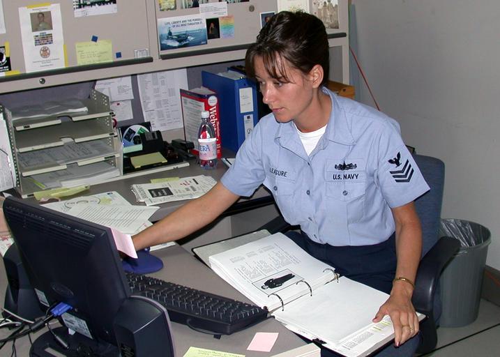 | Keywords: US Navy 030618-N-2893B-001 Information Technician 1st Class Annette Leasure takes a few minutes to fill out the BUPERS Online Uniform Survey Questionnaire.jpg en Naples Italy June 18 2003 -- Information Systems Technician 1st Class Annette Leasure from New Castle Ind takes a few minutes to fill out the BUPERS Online Uniform Survey Questionaire with a copy of U S Navy Uniform Regulations in hand Sailors fleetwide have until July 8 to complete the survey for Task Force Uniform which can be found online at <a href http //www bol navy mil Target _BLANK >www bol navy mil</a> U S Navy photo by JO2 Eric Brown RELEASED 2003-06-18 030618-N-2893B-001 Navy http //www navy mil/view_image asp id 8254 U S Navy photo by JO2 Eric Brown PD-USGov-Military-Navy Naval Support Activity Naples |