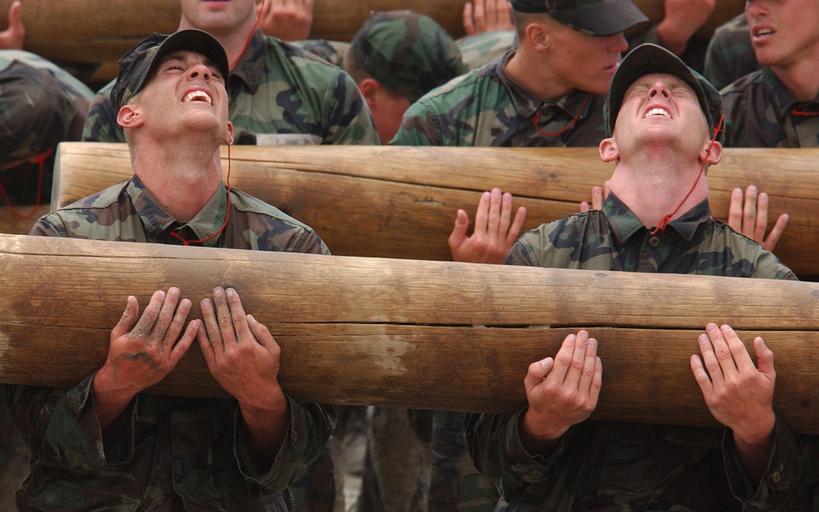 | Keywords: US Navy 030622-N-3953L-106 Basic Underwater Demolition-SEAL (BUD-S) students participate in Log PT (physical training) during Hell Week.jpg en CORONADO Calif June 22 2003 - Basic Underwater Demolition/SEAL BUD/S students participate in Log PT physical training during Hell Week Log PT is a demonstration not only of physical strength and endurance but the importance of teamwork The intense physical and mental conditioning it takes to become a SEAL begins at BUD/S training During this six-month mind and body obstacle course recruits are pushed to their physical and mental limits Further development of the core values Honor Courage Commitment and Integrity is an essential component of SEAL training and one that is weaved throughout a SEAL s career First phase is the basic conditioning phase and is eight weeks in length Physical training involves running swimming and calisthenics all of which become increasingly difficult as the weeks progress The fourth week of training Hell Week is days of continuous training with very little sleep This week is designed to push students to their maximum capability both physically and mentally The remaining weeks are spent in hydrographic reconnaissance and basic maritime training U S Navy photo by Photographer's Mate 2nd Class Eric S Logsdon RELEASED 2003-06-22 030622-N-3953L-106 Navy http //www navy mil/view_image asp id 51690 U S Navy photo by Photographer's Mate 2nd Class Eric S Logsdon PD-USGov-Military-Navy Naval Special Warfare Center Basic Underwater Demolitions/SEAL |