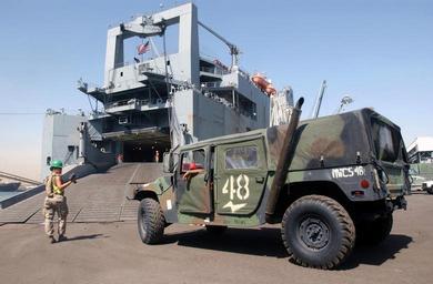 Keywords: US Navy 030709-N-5362A-012 A U.S Marine humvee assigned to the 1st Marine Expeditionary Force (1st MEF) drives into the cargo bay of the military sealift command ship.jpg en Port Shueiba Kuwait Jul 9 2003 - A U S Marine humvee assigned to the 1st Marine Expeditionary Force 1st MEF drives into the cargo bay of the military sealift command ship USNS Charlton T-AKR 314 The 1st MEF is returning to the U S after participating in Operation Iraqi Freedom a multinational coalition effort to liberate the Iraqi people eliminate Iraq's weapons of mass destruction and end the regime of Saddam Hussein U S Navy photo by Photographer's Mate 1st Class Arlo K Abrahamson RELEASED 2003-07-09 030709-N-5362A-012 Navy http //www navy mil/view_image asp id 11814 U S Navy photo by Photographer's Mate 1st Class Arlo K Abrahamson PD-USGov-Military-Navy United States Navy in Ash Shuaybah Kuwait USNS Charlton T-AKR-314 |