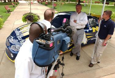 Keywords: US Navy 030811-N-9693M-003 National Football League (NFL) Hall of Fame quarterback, Terry Bradshaw and NASCAR Busch Series Driver Casey Atwood (right) are interviewed by Navy Marine Corps News.jpg en Arlington Va Aug 11 2003 -- National Football League NFL Hall of Fame quarterback Terry Bradshaw and NASCAR Busch Series Driver Casey Atwood right are interviewed by Navy Marine Corps News Journalist 3rd Class Robert Sekula and Photographer's Mate 2nd Class Larry Baruwa left in the Pentagon courtyard Bradshaw and Atwood were at the Pentagon for an autograph session and to promote their NASCAR Busch Series Race Team which is sponsored by the Navy U S Navy photo by Photographer's Mate 2nd Class Damon J Moritz RELEASED 2003-08-11 030811-N-9693M-003 Navy http //www navy mil/view_image asp id 8944 U S Navy photo by Photographer's Mate 2nd Class Damon J Moritz PD-USGov-Military-Navy Arlington County Virginia Casey Atwood |