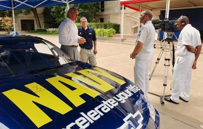 Keywords: US Navy 030811-N-9693M-002 National Football League (NFL) Hall of Fame quarterback, Terry Bradshaw (left) and NASCAR Busch Series Driver Casey Atwood are interviewed by Navy Marine Corps News.jpg en Arlington Va Aug 11 2003 -- National Football League NFL Hall of Fame quarterback Terry Bradshaw left and NASCAR Busch Series Driver Casey Atwood are interviewed by Navy Marine Corps News Journalist 3rd Class Robert Sekula and Photographer's Mate 2nd Class Larry Baruwa in the Pentagon court yard Bradshaw and Atwood were at the Pentagon for an autograph session and to promote their NASCAR Busch Series Race Team which is sponsored by the Navy U S Navy photo by Photographer's Mate 2nd Class Damon J Moritz RELEASED 2003-08-11 030811-N-9693M-002 Navy http //www navy mil/view_image asp id 8945 U S Navy photo by Photographer's Mate 2nd Class Damon J Moritz PD-USGov-Military-Navy Arlington County Virginia Casey Atwood