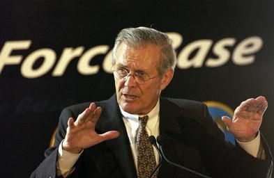 Keywords: US Navy 030825-F-2828D-352 Secretary of Defense Donald H. Rumsfeld responds to a reporter's question during a press conference at Lackland Air Force Base, San Antonio.jpg en San Antonio Texas Aug 25 2003 -- Secretary of Defense Donald H Rumsfeld responds to a reporter's question during a press conference at Lackland Air Force Base San Antonio Texas Rumsfeld met with members of the press after a town hall meeting where he delivered his opening remarks then fielded questions from military and civilian attendees DoD photo by Tech Sgt Andy Dunaway RELEASED 2003-08-25 030825-F-2828D-352 Navy http //www navy mil/view_image asp id 9205 U S Navy photo PD-USGov-Military-Navy Lackland Air Force Base Donald Rumsfeld in 2003 Press conferences in the United States |