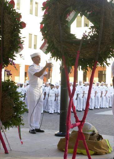 | Keywords: US Navy 030911-N-1375K-001 Builder 1st Class Scott Jones raises the American flag for morning colors as ranks stand at attention during the Terror Victim Memorial Observance ceremony held in the piazza of Naval Support Activity.jpg en Naval Air Station NAS Naples Italy Sept 11 2003 -- Builder 1st Class Scott Jones raises the American flag for morning colors as ranks stand at attention during the Terror Victim Memorial Observance ceremony held in the piazza of Naval Support Activity Naples This date marks the second anniversary of the terrorist attacks on Sept 11 2001 The ceremony also remembered those who have died as a result of terrorism around the world U S Navy photo by Photographer s Mate 2nd Class Richard Kiroy RELEASED 030911-N-1375K-001 Navy http //www navy mil/view_image asp id 9452 U S Navy photo by Photographer s Mate 2nd Class Richard Kiroy PD-USGov-Military-Navy Naval Support Activity Naples Second anniversary of the September 11 2001 attacks Sailors from the United States Navy Builder United States Navy |