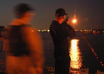 | Keywords: US Navy 030918-N-8955H-003 Master-at-Arms 2nd Class Dave Shull, Jr. from Orlando, Fla., shoots a non-lethal airburst device.jpg en Aboard USS Blue Ridge LCC 19 Sept 18 2003 -- Master-at-Arms 2nd Class Dave Shull Jr from Orlando Fla shoots a non-lethal airburst device with a shotgun while Chief Gunner s Mate Chip Gialito from Newport News Va evaluates the operation during a night force protection demonstration on the fantail of USS Blue Ridge The airburst devices are intended to warn approaching vessels that they should come no closer U S Navy photo by Photographer s Mate 1st Class Novia E Harrington RELEASED 2003-09-18 030918-N-8955H-003 Navy http //www navy mil/view_image asp id 9583 U S Navy photo by Photographer s Mate 1st Class Novia E Harrington PD-USGov-Military-Navy Aboard USS Blue Ridge LCC-19 Remington shotguns Master-at-arms Military activities at night Shooting |