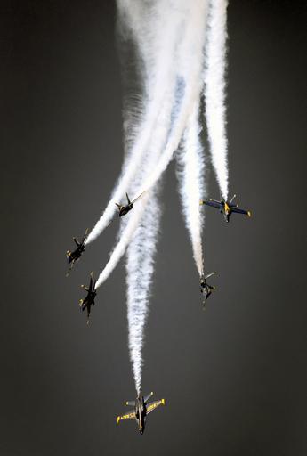 | Keywords: US Navy 030921-N-1539M-002 The U.S. Navy's Flight Demonstration Team Blue Angels, Delta Formation, breaks overhead during the Delta Loop Break maneuver.jpg en Duluth Minn Sept 21 2003 - The U S Navy's Flight Demonstration Team Blue Angels Delta Formation breaks overhead during the Delta Loop Break maneuver The pilots exit the flight line in six different directions execute individual reversal turns and then simultaneously cross show center at a combined closure speed of more than 1 000 miles per hour U S Navy photo by Photographer's Mate 2nd Class Saul McSween RELEASED 2003-09-21 030921-N-1539M-002 Navy http //www navy mil/view_image asp id 13137 U S Navy photo by Photographer's Mate 2nd Class Saul McSween PD-USGov-Military-Navy Images from US Navy location Duluth Minnesota Blue Angels F/A-18 Hornet in 2003 Blue Angels aerobatic maneuvers |