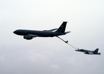 Keywords: US Navy 031114-N-3799S-004 An F-A 18 Hornet refuels.jpg en North Arabian Sea Nov 14 2003 -- An F/A 18 Hornet assigned to the Marauders of Strike Fighter Squadron Eight Two VFA-82 refuels with a U S Air Force KC 135 Tanker VFA-82 is deployed with Carrier Air Wing One CVW-1 aboard USS Enterprise CVN 65 in the North Arabian Sea U S Navy photo by Lt j g Perry Solomon RELEASED 2003-11-14 031114-N-3799S-004 Navy http //www navy mil/view_image asp id 10628 U S Navy photo by Lt j g Perry Solomon PD-USGov-Military-Navy Aerial refueling of F/A-18 Hornet Boeing KC-135 Stratotanker Strike Fighter Squadron 82 United States Navy |