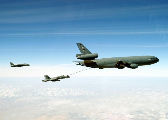 Keywords: US Navy 040109-N-3799S-001 An F-a-18 and an F-14 refuels with a U.S. Air Force KC-135 Sratotanker assigned to the 380th Aerial Refueling Wing.jpg en Central Command Area of Responsibility Jan 9 2004 -- An F/A-18 Hornet assigned to the Marauders of Strike Fighter Squadron Eight Two VFA 82 refuels with a U S Air Force KC-10 Extender assigned to the 380th Aerial Refueling Wing as an F-14A Tomcat assigned to the Checkmates of Fighter Squadron 211 VF-211 waits its turn to refuel VFA-82 and VF-211 are deployed with Carrier Air Wing One CVW-1 aboard USS Enterprise CVN-65 conducting missions in support of Operation Iraqi Freedom and the continued war on terrorism U S Navy photo by Lt Perry Solomon RELEASED 2004-01-09 040109-N-3799S-001 Navy http //www navy mil/view_image asp id 11325 U S Navy photo by Lt Perry Solomon PD-USGov-Military-Navy McDonnell Douglas KC-10 Extender Aircraft formation flight of F-14A Tomcat Aerial photographs of F-14 Tomcat in flight Fighter Squadron 211 United States Navy United States Navy images from Central Command Aerial refueling of F/A-18C Hornet Strike Fighter Squadron 82 United States Navy Aerial refueling of F/A-18 Hornet Strike Fighter Squadron 211 United States Navy |