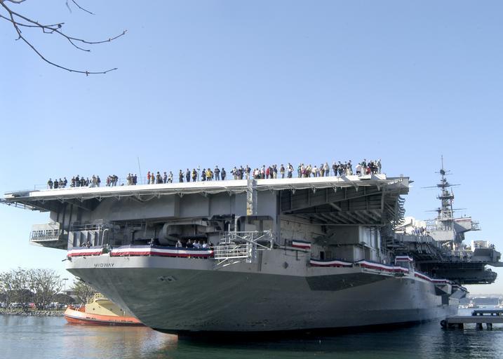 | Keywords: US Navy 040110-N-8029P-004 The decommissioned aircraft carrier Midway prepares to moor at its final resting place at Navy pier where it will become the largest museum devoted to carriers and naval aviation.jpg en San Diego Calif Jan 10 2004 -- The decommissioned aircraft carrier Midway prepares to moor at its final resting place at Navy pier where it will become the largest museum devoted to carriers and naval aviation The ship was temporarily moored at Naval Air Station North Island this past week so that preparations could be made to formally present the aircraft carrier to the city of San Diego When commissioned on September 10 1945 as USS Midway CVB 41 she was the largest carrier ever put to sea For more information on her history with the U S Navy go to the following link <a href http //www chinfo navy mil/navpalib/ships/carriers/histories/cv41-midway/cv41-midway html Target _BLANK >http //www chinfo navy mil/navpalib/ships/carriers/histories/cv41-midway/cv41-midway html</a> U S Navy photo by Photographer's Mate 3rd Class Ramon Preciado RELEASED 2004-01-10 040110-N-8029P-004 Navy http //www navy mil/view_image asp id 11376 U S Navy photo by Photographer's Mate 3rd Class Ramon Preciado PD-USGov-Military-Navy USS Midway Museum - Views from shore Tugboats with aircraft carriers |