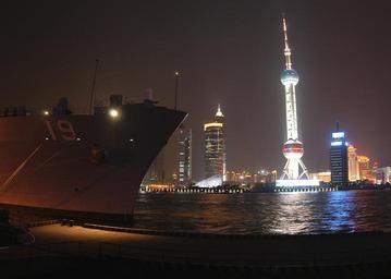 Keywords: US Navy 040227-N-8955H-037 During a port visit to Shanghai, China, the Seventh Fleet command and control ship USS Blue Ridge (LCC 19) is moored to the Gaoyang Road pier for the first time since March 2001.jpg en Shanghai China Feb 27 2004 During a port visit to Shanghai China the Seventh Fleet command and control ship USS Blue Ridge LCC 19 is moored to the Gaoyang Road pier for the first time since March 2001 Shanghai called Hu for short is a bustling metropolis located at the mouth of the Yangtze River Connected with Jiangsu and Zhejiang provincese in the west the city is exposed to the East China Sea in the east With a total area of 6341 square kilometers about 2 448 square miles and a population of more than 13 million Shanghai is China s largest city Sailors and Marines assigned to the Blue Ridge take in an opportunity to experience the local culture and interact with their counterparts from the People s Liberation Army Navy Blue Ridge is forward deployed to Yokosuka Japan U S Navy photo by Photographer's Mate 1st Class Novia E Harrington RELEASED 2004-02-27 040227-N-8955H-037 Navy http //www navy mil/view_image asp id 12213 U S Navy photo by Photographer's Mate 1st Class Novia E Harrington PD-USGov-Military-Navy Ships at night Buildings and structures in Shanghai at night Aboard USS Blue Ridge LCC-19