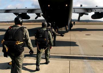 Keywords: US Navy 040323-N-8921O-001 Explosive Ordnance Disposal Mobile Unit Eleven (EODMU-11) members, walk on board a C-130 Hercules to conduct parachute training.jpg en Oak Harbor Wash Mar 23 2004 Explosive Ordnance Disposal Mobile Unit Eleven EODMU-11 members walk on board a C-130 Hercules to conduct parachute training EODMU-11 is flying with the 731st Airlift Squadron and will descend from altitudes ranging from 1 000 to 13 000 feet Their mission is to successfully exit the aircraft using proper parachuting procedures and hit their designated drop zone target Each jumper must go through a series of safety checks before jumping while being instructed by the jumpmaster who is the most qualified jumper aboard the aircraft and the only one who can give the okay to exit the aircraft U S Navy photo by Photographer's Mate Airman Chris Otsen RELEASED 2004-03-23 040323-N-8921O-001 Navy http //www navy mil/view_image asp id 12906 U S Navy photo by Photographer's Mate Airman Chris Otsen PD-USGov-Military-Navy Naval Air Station Whidbey Island United States Navy Explosive Ordnance Disposal Explosive Ordnance Disposal Mobile Unit 11 731st Airlift Squadron United States Air Force |
