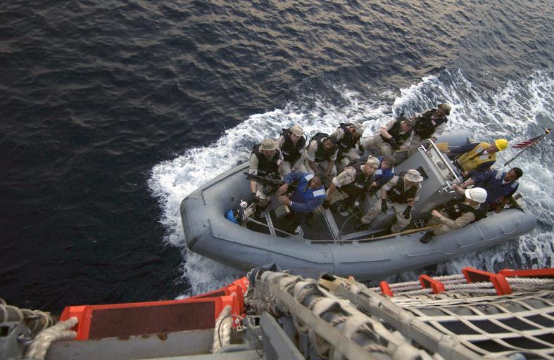 Keywords: US Navy 040423-N-5319A-013 The Visit Board Search and Seizure team (VBSS) assigned to USS Bulkeley (DDG 84) returns in a Rigid Hull Inflatable Boat (RHIB).jpg en At sea with USS Bulkeley DDG 84 Apr 23 2004 - The Visit Board Search and Seizure team VBSS assigned to USS Bulkeley DDG 84 returns in a Rigid Hull Inflatable Boat RHIB after conducting a Maritime Interdiction Operation MIO while participating in exercises aimed at fighting the global war on terrorism The Norfolk Va based Arleigh Burke class guided missile destroyer is on a scheduled deployment in support of Operation Iraqi Freedom U S Navy photo by Photographer s Mate 1st Class Brien Aho RELEASED 2004-04-23 040423-N-5319A-013 Navy http //www navy mil/view_image asp id 13621 U S Navy photo by Photographer s Mate 1st Class Brien Aho PD-USGov-Military-Navy USS Bulkeley DDG-84 Rigid-hulled inflatable boats of US Navy Visit Board Search and Seizure M60 machine gun