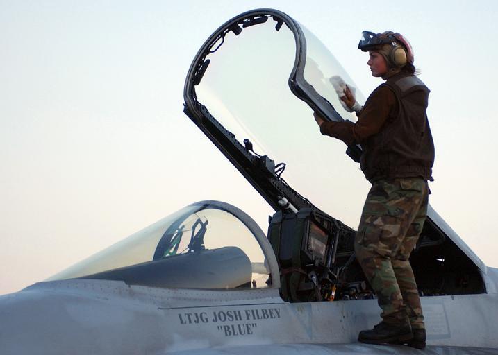 Keywords: US Navy 040507-N-8295E-004 Aviation Machinist's Mate 3rd Class Amy Lemke of Laporte, Minn., cleans the cockpit glass of an F-A-18 Hornet.jpg en Atlantic Ocean May 7 2004 - Aviation Machinist's Mate 3rd Class Amy Lemke of Laporte Minn cleans the cockpit glass of an F/A-18 Hornet assigned to the Golden Warriors of Fighter Attack Squadron Eight Seven VFA-87 Petty Officer Lemke is preparing the aircraft for night operations aboard USS Ronald Reagan CVN 76 Reagan is undergoing flight deck certifications off the coast of Virginia before leaving for its permanent homeport of San Diego in late May U S Navy photo by Photographer's Mate 2nd Class Charles A Edwards Jr RELEASED 2004-05-07 040507-N-8295E-004 Navy http //www navy mil/view_image asp id 13950 U S Navy photo by Photographer's Mate 2nd Class Charles A Edwards Jr PD-USGov-Military-Navy Aviation Machinist's Mate Maintenance of military aircraft on USS Ronald Reagan CVN-76 |