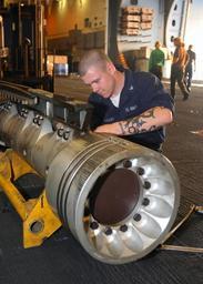 | Keywords: US Navy 040519-N-4911D-004 Aviation Boatswain Mate 3rd Class Neal Dunleavy completes maintenance on catapult equipment.jpg en Atlantic Ocean May 19 2004 - Aviation Boatswain Mate 3rd Class Neal Dunleavy assigned to Air Department aboard USS Enterprise CVN 65 completes maintenance on catapult equipment in the ship's hangar bay Enterprise is currently underway in the Atlantic Ocean U S Navy photo by Photographer's Mate 2nd Class Butler Day RELEASED 2004-05-19 040519-N-4911D-004 Navy http //www navy mil/view_image asp id 14310 U S Navy photo by Photographer's Mate 2nd Class Butler Day PD-USGov-Military-Navy Aboard USS Enterprise CVN-65 Aviation Boatswain's Mates Equipment Steam catapults Men with arm tattoos |