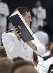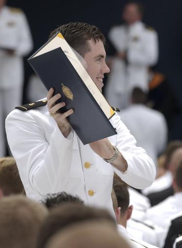 Keywords: US Navy 040528-N-9693M-019 Newly commissioned Ensign Garrettson Blight displays his degree to family and friends in the crowd during the U.S. Naval Academy class of 2004 graduation and commissioning ceremony.jpg en U S Naval Academy May 28 2004 - Newly commissioned Ensign Garrettson Blight displays his degree to family and friends in the crowd during the U S Naval Academy class of 2004 graduation and commissioning ceremony Nine hundred-ninety Midshipmen graduated from the U S Naval Academy and became commissioned officers in the U S Military Chairman of the Joint Chiefs of Staff Gen Richard B Myers delivered the commencement address and personally greeted each graduate during the ceremony The men and women of the graduating class were sworn into the Navy as Ensigns or into the Marine Corps as Second Lieutenants U S Navy photo by Photographer's Mate 2nd Class Damon J Moritz RELEASED 2004-05-28 040528-N-9693M-019 Navy http //www navy mil/view_image asp id 14488 U S Navy photo by Photographer's Mate 2nd Class Damon J Moritz PD-USGov-Military-Navy Graduation and Commissioning Ceremony May 28 2004 Taken with Nikon D1X |