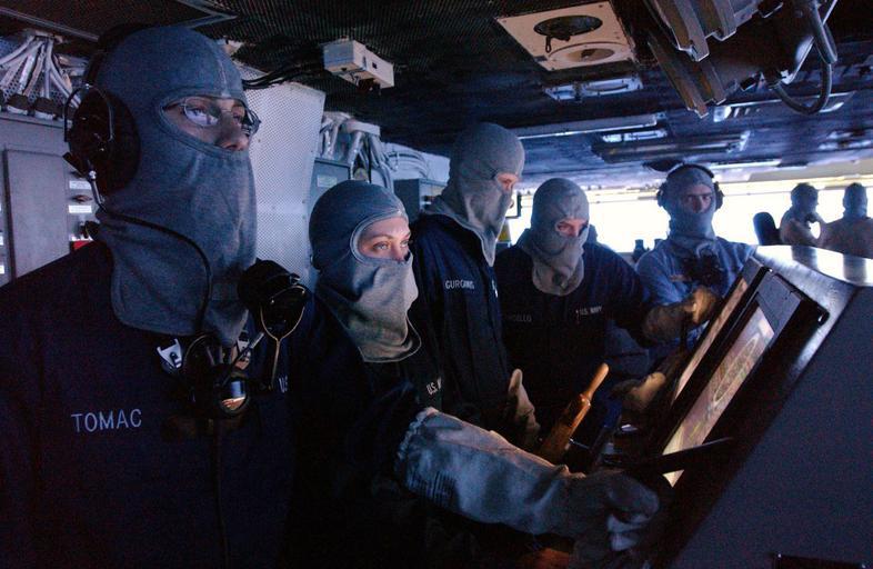Keywords: US Navy 040531-N-8148A-039 Master helmsman, Seaman Andrew Tomac, of Joliet, Ill., stands watch on the bridge with lee helmsman under instruction, Quartermaster Seaman Danielle Ainsburg, of Huntington, Mass., during a General Qu.jpg en South Atlantic Ocean May 31 2004 - Master helmsman Seaman Andrew Tomac of Joliet Ill stands watch on the bridge with lee helmsman under instruction Quartermaster Seaman Danielle Ainsburg of Huntington Mass during a General Quarters drill aboard USS Ronald Reagan CVN 76 Reagan is underway circumnavigating South America on her way to her new homeport of San Diego Calif U S Navy photo by Photographer's Mate 3rd Class Kitt Amaritnant RELEASED 2004-05-31 040531-N-8148A-039 Navy http //www navy mil/view_image asp id 14668 U S Navy photo by Photographer's Mate 3rd Class Kitt Amaritnant PD-USGov-Military-Navy Bridge of USS Ronald Reagan CVN-76 Training on USS Ronald Reagan CVN-76 |