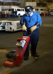 Keywords: US Navy 040601-N-9319H-030 Airman Armando Zarco, of Turlock, Calif., removes non-skid from a weapons elevator door in the hangar bay.jpg en South Atlantic Ocean Jun 1 2004 - Airman Armando Zarco of Turlock Calif removes non-skid from a weapons elevator door in the hangar bay aboard the aircraft carrier USS Ronald Reagan CVN 76 Reagan is underway circumnavigating South America on her way to her new homeport of San Diego Calif U S Navy photo by Photographer's Mate 3rd Class Angel G Hilbrands RELEASED 2004-06-01 040601-N-9319H-030 Navy http //www navy mil/view_image asp id 14671 U S Navy photo by Photographer's Mate 3rd Class Angel G Hilbrands PD-USGov-Military-Navy Hangar bays of USS Ronald Reagan CVN-76 Weapons elevators of USS Ronald Reagan CVN-76 |
