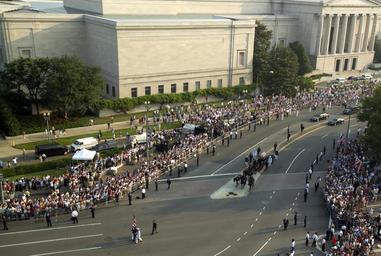 | Keywords: US Navy 040609-F-7466S-004 Ceremonial Honor Guard escort the U.S. Army's 3rd Infantry Regiment Old Guard Caisson Platoon bearing former President Ronald Reagan's flag-draped casket.jpg en Washington D C Jun 9 2004 - Ceremonial Honor Guard escort the U S Army's 3rd Infantry Regiment Old Guard Caisson Platoon bearing former President Ronald Reagan's flag-draped casket making its way down Constitution Ave during President Reagan's funeral procession from the White House to the U S Capitol A state funeral will be conducted late Friday morning at the Washington National Cathedral where President Bush will give the eulogy U S Air Force photo by Master Sgt Mark Suban RELEASED 2004-06-09 040609-F-7466S-004 Navy http //www navy mil/view_image asp id 15066 U S Navy photo PD-USGov-Military-Navy People of the United States Navy Death and state funeral of Ronald Reagan 3rd Infantry Regiment United States Honour guards from the United States Constitution Avenue |