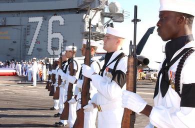 Keywords: US Navy 040615-N-4616B-006 The Honor Guard rifle team aboard USS Ronald Reagan (CVN 76) present arms during the playing of the national anthem, at a memorial service held for former President Ronald Reagan.jpg en South Atlantic Ocean Jun 15 2004 - The Honor Guard rifle team aboard USS Ronald Reagan CVN 76 present arms during the playing of the national anthem at a memorial service held for former President Ronald Reagan The aircraft carrier Ronald Reagan is circumnavigating South America while transiting to its new homeport of San Diego Calif U S Navy photo by Photographer's Mate 3rd Class Rusty Black RELEASED 2004-06-15 040615-N-4616B-006 Navy http //www navy mil/view_image asp id 15197 U S Navy photo by Photographer's Mate 3rd Class Rusty Black PD-USGov-Military-Navy Ronald Reagan memorial service on USS Ronald Reagan CVN-76 M14 rifle 76 number |
