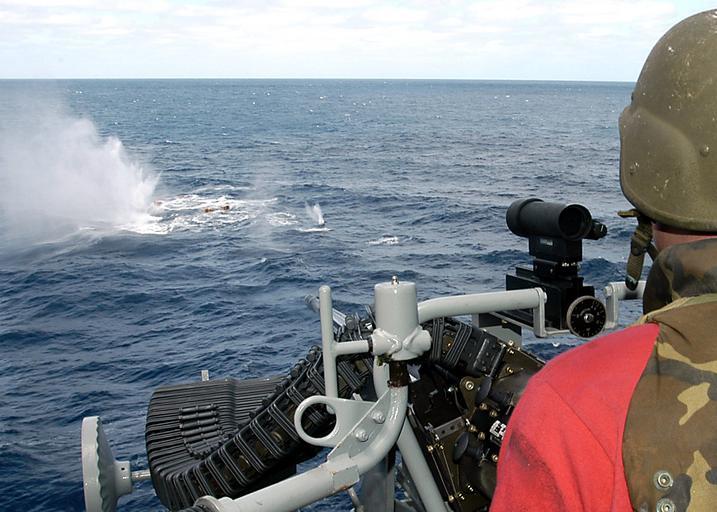 Keywords: US Navy 040616-N-2972R-015 Gunner's Mate 3rd Class Marc Gent, from Norman, Okla., fires at target boxes using an MK-38 25mm Machine Gun System.jpg en Mediterranean Sea Jun 16 2004 - Gunner's Mate 3rd Class Marc Gent from Norman Okla fires at target boxes using an MK-38 25mm Machine Gun System MGS aboard the amphibious assault ship USS Kearsarge LHD 3 The 25mm MGS is an automatic gun system that provides ships with a defensive and offensive gunfire capability for the engagement of a variety of surface targets It is designed to provide close range defense against patrol boats swimmers floating mines and various targets ashore including enemy personnel lightly armored vehicles and terrorist threats Kearsarge is surge deployed to transport elements of the 24th Marine Expeditionary Unit MEU to the Central Command Area of Responsibility AOR in support of Operation Iraqi Freedom OIF and the global war on terrorism U S Navy photo by Photographer's Mate 3rd Class Angel Roman-Otero RELEASED 2004-06-16 040616-N-2972R-015 Navy http //www navy mil/view_image asp id 15259 U S Navy photo by Photographer's Mate 3rd Class Angel Roman-Otero PD-USGov-Military-Navy Mk 38 25mm chain gun Aboard USS Kearsarge LHD-3 Gunner's Mate Shooting |