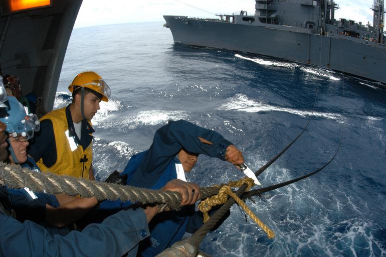 Keywords: US Navy 040619-N-8704K-001 Boatswain Mate 3rd Class Joanna Saldana cuts the rope off a span wire aboard the aircraft carrier USS John F. Kennedy (CV 67) during an underway replenishment.jpg en Atlantic Ocean Jun 19 2004 - Boatswain Mate 3rd Class Joanna Saldana cuts the rope off a span wire aboard the aircraft carrier USS John F Kennedy CV 67 during an underway replenishment with fast combat support ship USS Seattle AOE 3 Kennedy is one of seven aircraft carriers involved in Summer Pulse 2004 Summer Pulse 2004 is the simultaneous deployment of seven aircraft carrier strike groups CSGs demonstrating the ability of the Navy to provide credible combat power across the globe in five theaters with other U S allied and coalition military forces Summer Pulse is the Navy s first deployment under its new Fleet Response Plan FRP U S Navy photo by Photographer s Mate 3rd Class Joshua Karsten RELEASED For more information go to <a href http //www cffc navy mil/summerpulse04 htm Target _BLANK >www cffc navy mil/summerpulse04 htm</a> 2004-06-19 040619-N-8704K-001 Navy http //www navy mil/view_image asp id 15238 U S Navy photo by Photographer s Mate 3rd Class Joshua Karsten PD-USGov-Military-Navy USS Seattle AOE-3 Ropes |