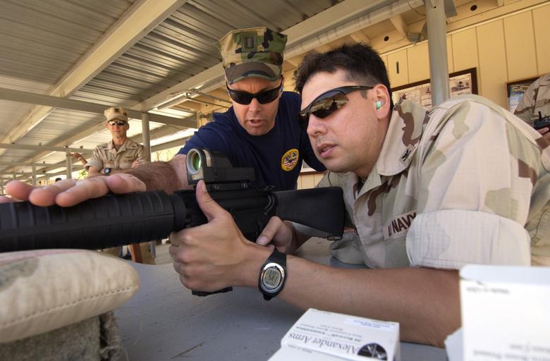 Keywords: US Navy 040628-N-4142G-001 Lt. Mark Kaes gives Photographer's Mate 2nd Class Brandon Teeples, assigned to Fleet Combat Camera Group Pacific, tips on different shooting techniques.jpg en San Diego Calif June 28 2004 - Lt Mark Kaes gives Photographer's Mate 2nd Class Brandon Teeples assigned to Fleet Combat Camera Group Pacific tips on different shooting techniques with an Alexander Arms 50 caliber Beauwolf assault rifle at the local Rod Gun Club in San Diego Calif Petty Officer Teeples and Mobile Security Squadron Three MSS-3 are testing the armor piercing quality of the rifle for stopping power on military vehicle engine blocks U S Navy photo by Photographer's Mate 1st Class Felix Garza Jr RELEASED 2004-06-28 040628-N-4142G-001 Navy http //www navy mil/view_image asp id 15683 U S Navy photo by Photographer's Mate 1st Class Felix Garza Jr PD-USGov-Military-Navy Naval Base San Diego in the 2000s United States Navy Mobile Security Squadron 3 AR-15 Photographers Mate Photographs by Felix Garza Jr |