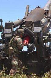 Keywords: US Navy 040713-N-5055W-230 Lance Cpl. Ramon Gallego, assigned to First Battalion, Twelfth Marine Regiment, loads a charge round.jpg en Pacific Missile Range Barking Sands Hawaii July 13 2004 - Lance Cpl Ramon Gallego assigned to First Battalion Twelfth Marine Regiment loads a charge round behind the ammunition round in preparation for the next firing of the Howitzer 150 gun The Twelfth Marine Regiment is participating in exercise Rim of the Pacific RIMPAC 2004 RIMPAC is the largest international maritime exercise in the waters around the Hawaiian Islands This years exercise includes seven participating nations; Australia Canada Chile Japan South Korea the United Kingdom and the United States RIMPAC is intended to enhance the tactical proficiency of participating units in a wide array of combined operations at sea while enhancing stability in the Pacific Rim region U S Navy photo by Photographer's Mate 1st Class Jane West RELEASED For more information go to <a href http //www cpf navy mil/RIMPAC2004 Target _BLANK >www cpf navy mil/RIMPAC2004</a>/ 2004-07-13 040713-N-5055W-230 Navy http //www navy mil/view_image asp id 16262 U S Navy photo by Photographer's Mate 1st Class Jane West PD-USGov-Military-Navy Pacific Missile Range Facility Barking Sands RIMPAC 2004 Loading weapons M198 howitzer |