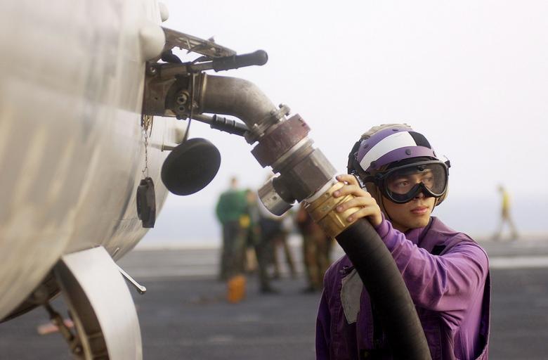 | Keywords: US Navy 040722-N-5464G-011 Airman Kevin Logan of Los Angeles, Calif., refuels a.jpg en Pacific Ocean July 22 2004 - Airman Kevin Logan of Los Angeles Calif refuels a Go Bird on the flight aboard USS Kitty Hawk CV 63 Go Bird refers to aircraft made ready for the next scheduled launch cycle Kitty Hawk is one of seven carrier strike groups CSGs involved in Summer Pulse 2004 Summer Pulse 2004 is the deployment of seven carrier strike groups CSGs demonstrating the ability of the Navy to provide credible combat capability across the globe in five theaters with other U S allied and coalition military forces Summer Pulse is the Navy s first deployment under its new Fleet Response Plan FRP U S Navy photo by Photographer's Mate Airman Theron J Godbold RELEASED For more information go to <a href http //www cffc navy mil/summerpulse04 htm Target _BLANK >http //www cffc navy mil/summerpulse04 htm</a> 2004-07-22 040722-N-5464G-011 Navy http //www navy mil/view_image asp id 16555 U S Navy photo by Photographer's Mate Airman Theron J Godbold PD-USGov-Military-Navy Aboard USS Kitty Hawk CV-63 Aircraft fueling |