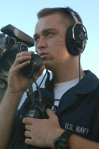 Keywords: US Navy 040730-N-0717N-068 Seaman Andras Mathe, of Easton, Conn., stands a forward lookout watch from the signal bridge of the aircraft carrier USS Kitty Hawk (CV 63).jpg en Pacific Ocean July 30 2004 - Seaman Andras Mathe of Easton Conn stands a forward lookout watch from the signal bridge of the aircraft carrier USS Kitty Hawk CV 63 The signal bridge is responsible for using flag hoists yardarm blinkers and semaphore to communicate between ships Kitty Hawk is one of seven carrier strike groups CSGs involved in Summer Pulse 2004 which is the deployment of seven carrier strike groups CSGs demonstrating the ability of the Navy to provide credible combat capability across the globe in five theaters with other U S allied and coalition military forces Summer Pulse is the Navy s first deployment under its new Fleet Response Plan FRP U S Navy photo by Photographer's Mate Airman Justin Novack RELEASED For more information go to <a href http //www cffc navy mil/summerpulse04 htm Target _BLANK >www cffc navy mil/summerpulse04 htm</a> 2004-07-30 040730-N-0717N-068 Navy http //www navy mil/view_image asp id 16776 U S Navy photo by Photographer's Mate Airman Justin Novack PD-USGov-Military-Navy Aboard USS Kitty Hawk CV-63 |