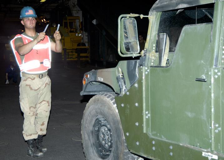 Keywords: US Navy 040808-N-1238B-047 Lance Cpl. Jesse Maclag directs a Humvee aboard the amphibious assault ship USS Wasp (LHD 1).jpg en Ash Shuaybah Kuwait Aug 8 2004 Lance Cpl Jesse Maclag directs a Humvee aboard the amphibious assault ship USS Wasp LHD 1 The Humvee returned to Wasp along with Marines assigned to the 22nd Marine Expeditionary Unit MEU Special Operations Capable after a four-month mission in Afghanistan Wasp and the 22nd MEU are deployed as part of Expeditionary Strike Group Two ESG-2 operating in the 5th Fleet area of responsibility U S Navy photo by Photographer s Mate Airman Toni N Burton RELEASED 2004-08-08 040808-N-1238B-047 Navy http //www navy mil/view_image asp id 16942 U S Navy photo by Photographer s Mate Airman Toni N Burton PD-USGov-Military-Navy United States Navy in Ash Shuaybah Kuwait |