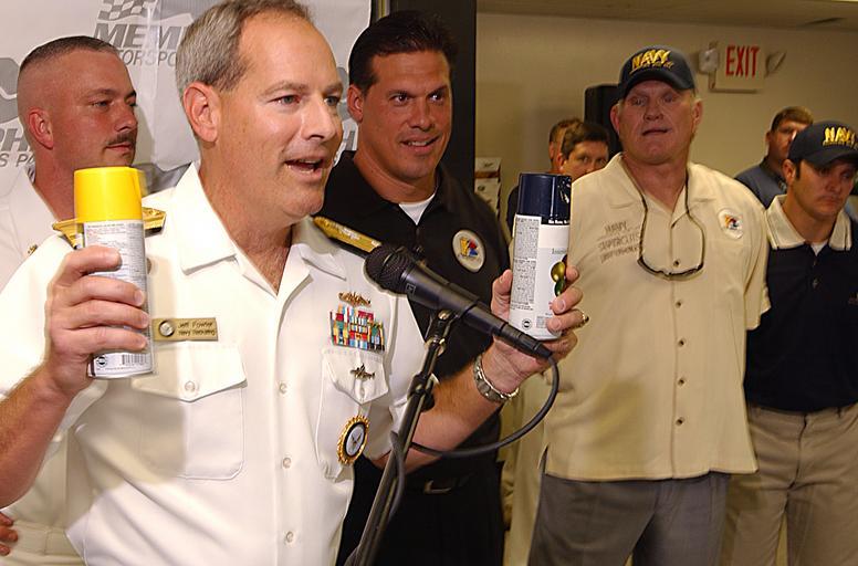 Keywords: US Navy 041022-N-5862D-097 Everything is going to change except the Navy colors of blue and yellow, said, Commander, Navy Recruiting Command, Rear Adm. Jeff Fowler said, as the Navy announced it^rsquo,s contract renewal for the.jpg en Millington Tenn Oct 22 2004 Everything is going to change except the Navy colors of blue and yellow said Commander Navy Recruiting Command Rear Adm Jeff Fowler said as the Navy announced it s contract renewal for the 2005 season with FitzBradshaw Racing during a press conference at the Memphis Motor Sports Park in Millington Tenn Stremme the 2003 Busch Series Rookie of the Year will take the wheel in the Dodge Charger U S Navy photo by Chief Photographer s Mate Chris Desmond RELEASED 2004-10-22 041022-N-5862D-097 Navy http //www navy mil/view_image asp id 18402 U S Navy photo by Chief Photographer s Mate Chris Desmond PD-USGov-Military-Navy Military in Tennessee Jeffrey Fowler Armando Fitz Terry Bradshaw David Stremme |