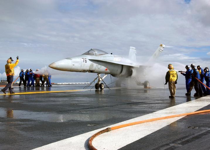 | Keywords: US Navy 041107-N-7130B-033 Air Department personnel approach a static training aircraft on the flight deck aboard the Nimitz-class aircraft carrier USS Ronald Reagan (CVN 76), during extensive aircraft firefighting drills at se.jpg en Pacific Ocean Nov 7 2004 - Air Department personnel approach a static training aircraft on the flight deck aboard the Nimitz-class aircraft carrier USS Ronald Reagan CVN 76 during extensive aircraft firefighting drills at sea Reagan is conducting sea trials for the first time since arriving in its new homeport of San Diego Calif U S Navy photo by Photographer's Mate Airman Aaron Burden RELEASED 2004-11-07 041107-N-7130B-033 Navy http //www navy mil/view_image asp id 18663 U S Navy photo by Photographer's Mate Airman Aaron Burden PD-USGov-Military-Navy Firefighting training on USS Ronald Reagan CVN-76 Aviation fire training F/A-18 Hornet on flight decks |