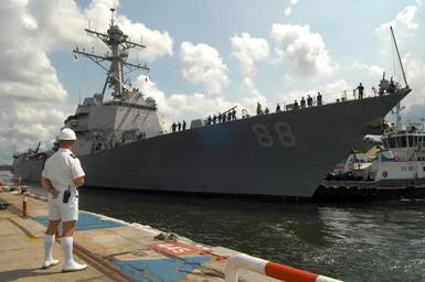 Keywords: US Navy 041116-N-0493B-001 Chief Petty Officer Chuck Norris form the Royal Navy Liaison Office, Singapore, keeps a close watch during the arrival of the guided missile destroyer USS Preble (DDG 88) for a scheduled port visit.jpg en Singapore Nov 16 2004 - Chief Petty Officer Chuck Norris form the Royal Navy Liaison Office Singapore keeps a close watch during the arrival of the guided missile destroyer USS Preble DDG 88 for a scheduled port visit Preble and her crew of approximately 320 have been on deployment from their homeport of San Diego since June 17 and recently completed operations in the Arabian Gulf as part of Expeditionary Strike Group Three ESG-3 U S Navy photo by Lt Chuck Bell RELEASED 2004-11-16 041116-N-0493B-001 Navy http //www navy mil/view_image asp id 18983 U S Navy photo by Lt Chuck Bell PD-USGov-Military-Navy Naval ships of the United States in Singapore USS Preble DDG-88 |