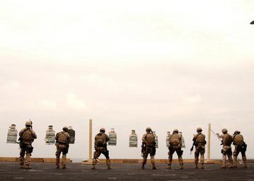 | Keywords: US Navy 041116-N-4757S-047 Sailors assigned to Explosive Ordnance Disposal Mobile Unit Six (EODMU-6), Detachment Ten, practice shooting M-4 rifles and 9mm pistols aboard the Nimitz-class aircraft carrier USS Harry S. Truman (CV.jpg en Arabian Sea Nov 16 2004 Sailors assigned to Explosive Ordnance Disposal Mobile Unit Six EODMU-6 Detachment Ten practice shooting M-4 rifles and 9mm pistols aboard the Nimitz-class aircraft carrier USS Harry S Truman CVN 75 Truman s Carrier Strike Group Ten CSG-10 and her embarked Carrier Air Wing Three CVW-3 are currently on a scheduled deployment in support of the Global War on Terrorism U S Navy photo by Photographer's Mate 3rd Class Craig R Spiering RELEASED 2004-11-16 041116-N-4757S-047 Navy http //www navy mil/view_image asp id 18990 U S Navy photo by Photographer's Mate 3rd Class Craig R Spiering PD-USGov-Military-Navy United States Navy Explosive Ordnance Disposal Aboard USS Harry S Truman CVN-75 Explosive Ordnance Disposal Mobile Unit 6 |