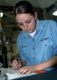 | Keywords: US Navy 041117-N-5313A-004 Lithographer Seaman Christen R. Nicholas double checks her work on a Planned Maintenance System job sheet, in the print lab aboard the amphibious assault ship USS Kearsarge (LHD 3).jpg en Atlantic Ocean Nov 16 2004 - Lithographer Seaman Christen R Nicholas double checks her work on a Planned Maintenance System job sheet in the print lab aboard the amphibious assault ship USS Kearsarge LHD 3 The Kearsarge Expeditionary Strike Group and the 26th Marine Expeditionary Unit MEU are conducting initial integrated training in preparation for an upcoming scheduled deployment U S Navy photo by Photographer's Mate Airman Sarah E Ard RELEASED 2004-11-16 041117-N-5313A-004 Navy http //www navy mil/view_image asp id 18996 U S Navy photo by Photographer's Mate Airman Sarah E Ard PD-USGov-Military-Navy Aboard USS Kearsarge LHD-3 |
