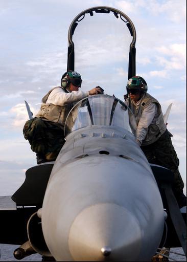 | Keywords: US Navy 041203-N-4953E-006 Aviation Electricians Mate 2nd Class James Cain (left) and Corporal Juan Garcia assigned to the Silver Eagles of Marine Fighter Attack Squadron One One Five (VMFA-115), perform electrical checks on an.jpg en Persian Gulf Dec 3 2004 - Aviation Electricians Mate 2nd Class James Cain left and Corporal Juan Garcia assigned to the Silver Eagles of Marine Fighter Attack Squadron One One Five VMFA-115 perform electrical checks on an F/A-18 Hornet before flight operations on the flight deck of USS Harry S Truman CVN 75 Truman's Carrier Strike Group Ten CSG-10 and her embarked Carrier Air Wing Three CVW-3 are currently on a scheduled deployment in support of the Global War on Terrorism U S Navy photo by Photographer's Mate 2nd Class Danny Ewing Jr RELEASED 2004-12-03 041203-N-4953E-006 Navy http //www navy mil/view_image asp id 19404 U S Navy photo by Photographer's Mate 2nd Class Danny Ewing Jr PD-USGov-Military-Navy Aboard USS Harry S Truman CVN-75 Photographs by Danny Ewing Jr |