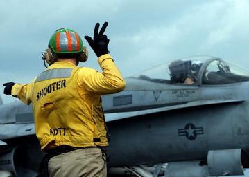 | Keywords: US Navy 041209-N-6363M-006 Lt. cmdr. Brian Weiss prepares to launch an F-A-18A- Hornet assigned to the Silver Eagles of Marine Fighter Attack Squadron One One Five (VMFA-115).jpg en Persian Gulf Dec 9 2004 - Lt cmdr Brian Weiss prepares to launch an F/A-18A+ Hornet assigned to the Silver Eagles of Marine Fighter Attack Squadron One One Five VMFA-115 from one of the four steam-powered catapults aboard the Nimitz-class aircraft carrier USS Harry S Truman CVN 75 Currently aircraft from Carrier Air Wing Three CVW-3 embarked aboard Truman are providing close air support and conducting intelligence surveillance and reconnaissance missions in ongoing operations over Iraq Truman s Carrier Strike Group Ten CSG-10 and CVW-3 are on a regularly scheduled deployment in support of the Global War on Terrorism US Navy photo by Photographer s Mate Airman Philip V Morrill RELEASED 2004-12-09 041209-N-6363M-006 Navy http //www navy mil/view_image asp id 19667 U S Navy photo PD-USGov-Military-Navy Aboard USS Harry S Truman CVN-75 |