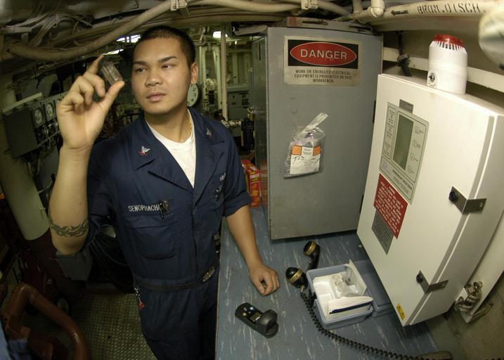Keywords: US Navy 050103-N-9079D-126 Engineman 3rd Class Steve Sengphachanh of Anderson, Calif., checks bromine levels on potable water.jpg en Indian Ocean Jan 3 2005 - Engineman 3rd Class Steve Sengphachanh of Anderson Calif checks bromine levels on potable water to make sure water is drinkable aboard the guided missile destroyer USS Benfold DDG 65 Benfold is assigned to the USS Abraham Lincoln CVN 72 Carrier Strike Group currently operating in the Indian Ocean off the waters of Indonesia and Thailand in support of Operation Unified Assistance U S Navy photo by Photographer's Mate Airman Ronald Dallatorre RELEASED 2005-01-03 050103-N-9079D-126 Navy http //www navy mil/view_image asp id 20251 U S Navy photo PD-USGov-Military-Navy Aboard USS Abraham Lincoln CVN-72 Engineman United States Navy Aboard USS Benfold DDG-65 |