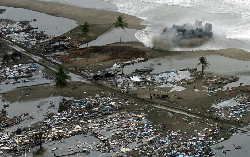| Keywords: US Navy 050110-N-7586B-082 Landing Craft Air Cushion (LCAC) vehicles, assigned to USS Bonhomme Richard (LHD 6) deliver needed materials and supplies to the citizens in the city of Meulaboh.jpg en Meulaboh Sumatra Indonesia Jan 10 2005 - Landing Craft Air Cushion LCAC vehicles assigned to USS Bonhomme Richard LHD 6 and Expeditionary Strike Group Five ESG-5 deliver needed materials and supplies to the citizens in the city of Meulaboh on the island of Sumatra Indonesia The LCACs are capable of transporting more supplies than helicopters in a single trip The Bonhomme Richard Expeditionary Strike Group is currently operating in the Indian Ocean off the waters of Indonesia and Thailand in support of Operation Unified Assistance the humanitarian operation effort in the wake of the Tsunami that struck South East Asia U S Navy photo by Photographer's Mate 1st Class Bart A Bauer RELEASED 2005-01-10 050110-N-7586B-082 Navy http //www navy mil/view_image asp id 20447 U S Navy photo by Photographer's Mate 1st Class Bart A Bauer PD-USGov-Military-Navy Images from US Navy location Meulaboh Sumatra Indonesia Aboard USS Bonhomme Richard LHD-6 LCAC-44 ship 1992 |