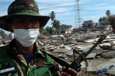 | Keywords: US Navy 050113-N-7586B-173 A Soldier from Singapore provides security in Meulaboh, Sumatra, Indonesia as aid is delivered to the devastated city.jpg en Meulaboh Sumatra Indonesia Jan 13 2005 - A Soldier from Singapore provides security in Meulaboh Sumatra Indonesia as aid is delivered to the devastated city More than 18 000 Marines Sailors Airmen Soldiers and Coast Guardsmen with Combined Support Force 536 CSF-536 are working with international military and commercial organizations to aid the affected people of Thailand Sri Lanka and Indonesia after a magnitude 9 0 earthquake triggered devastating tsunamis International efforts to minimize suffering and mitigate loss of life resulting from the effects of the earthquake and tsunami continue as the Combined Support Force of host nations civilian aid organizations and U S Department of Defense work hand in hand to provide humanitarian assistance in support Operation Unified Assistance U S Navy photo by Photographer's Mate 1st Class Bart A Bauer RELEASED 2005-01-13 050113-N-7586B-173 Navy http //www navy mil/view_image asp id 20660 U S Navy photo by Photographer's Mate 1st Class Bart A Bauer PD-USGov-Military-Navy Images from US Navy location Meulaboh Sumatra Indonesia |
