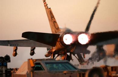 | Keywords: US Navy 050113-N-6363M-029 An F-A-18A- Hornet launches from the flight deck aboard USS Harry S. Truman (CVN 75).jpg en Persian Gulf Jan 13 2005 An F/A-18A+ Hornet assigned to the Silver Eagles of Marine Fighter Attack Squadron One One Five VMFA-115 launches from the flight deck aboard USS Harry S Truman CVN 75 The Nimitz-class aircraft carrier and her embarked Carrier Air Wing Three CVW-3 are providing close air support and conducting intelligence surveillance and reconnaissance ISR missions over Iraq The Truman Carrier Strike Group is on a regularly scheduled deployment in support of the Global War on Terrorism U S Navy photo by Photographer s Mate Airman Philip V Morrill RELEASED 2005-01-13 050113-N-6363M-029 Navy http //www navy mil/view_image asp id 20797 U S Navy photo by Photographer s Mate Airman Philip V Morrill PD-USGov-Military-Navy F/A-18A Hornet on flight decks Aboard USS Harry S Truman CVN-75 F/A-18 Hornet aircraft carrier launches Aircraft using afterburning |