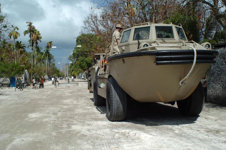 | Keywords: US Navy 050122-N-8252B-187 A lighter amphibious resupply cargo (LARC) brings equipment to help clear some of the rubble in areas affected by the December 26, 2004 tsunami in Southeast Asia.jpg en Isdhoo Kalaidhoo Maldives Jan 22 2005 - A lighter amphibious resupply cargo LARC brings equipment to help clear some of the rubble in areas affected by the December 26 2004 tsunami in Southeast Asia More than 18 000 Marines Sailors Airmen Soldiers and Coast Guardsmen with Combined Support Force Five Three Six CSF-536 working with international militaries and non-governmental organizations to aid the affected people of Thailand Sri Lanka and Indonesia after the tsunami devastated the region A Combined Support Force of host nations civilian aid organizations and U S Department of Defense work to provide humanitarian assistance in support Operation Unified Assistance the humanitarian relief effort to aid the victims of the tsunami that struck Southeast Asia U S Navy photo by Photographer s Mate 2nd Class Katrina Beeler RELEASED 2005-01-22 050122-N-8252B-187 Navy http //www navy mil/view_image asp id 21499 U S Navy photo by Photographer s Mate 2nd Class Katrina Beeler PD-USGov-Military-Navy Images from US Navy location Isdhoo Kalaidhoo Maldives LARC-V |